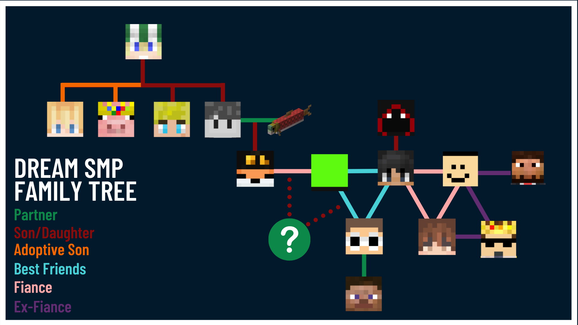 Dream Smp Family Tree - Sapnap is bbh son and dream and george called bbh dad a few times too,, bbh is married to skeppy,, so the dream team could be brothers fundy could also have george and sapnap as his brothers in law,, fundy got adopted by eret, so that means dream has both wilbur and.
