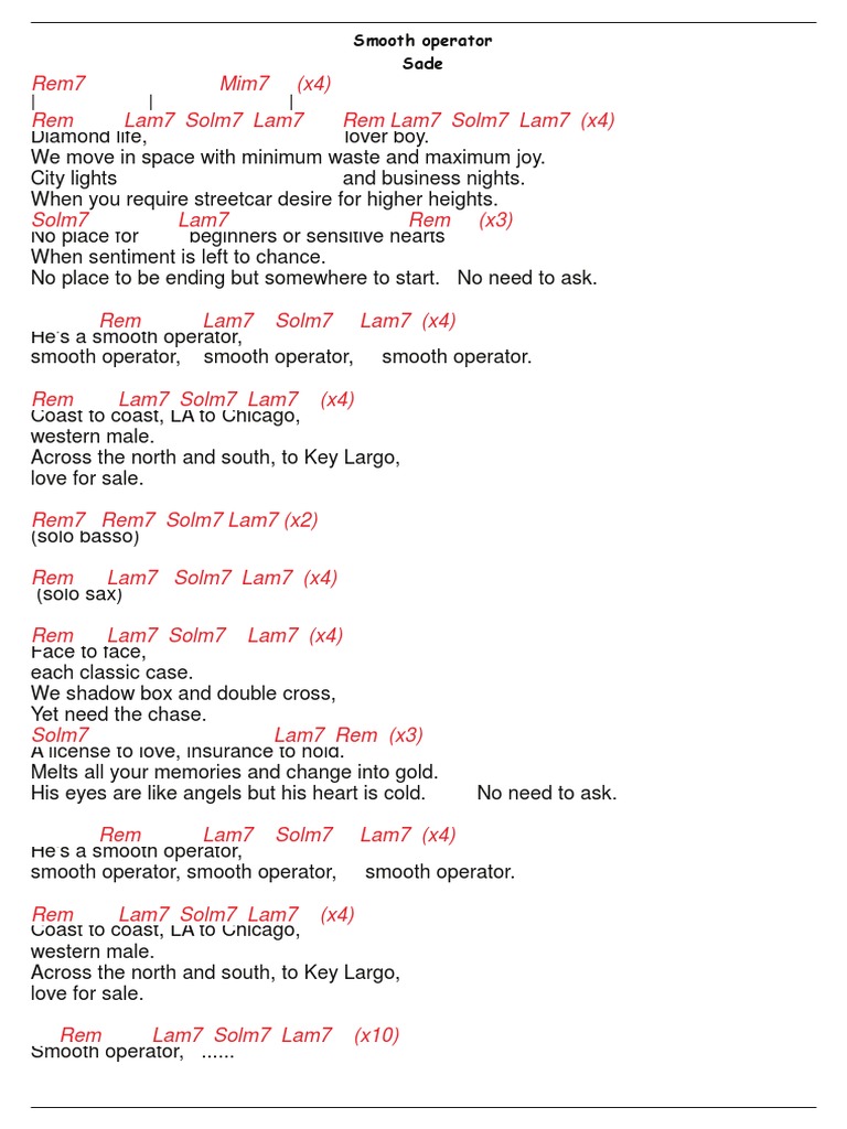 Smooth Operator Sade Sax Guitar Backing Track With Chords And Lyrics Youtube - Across the north and south, to key largo, love for sale.